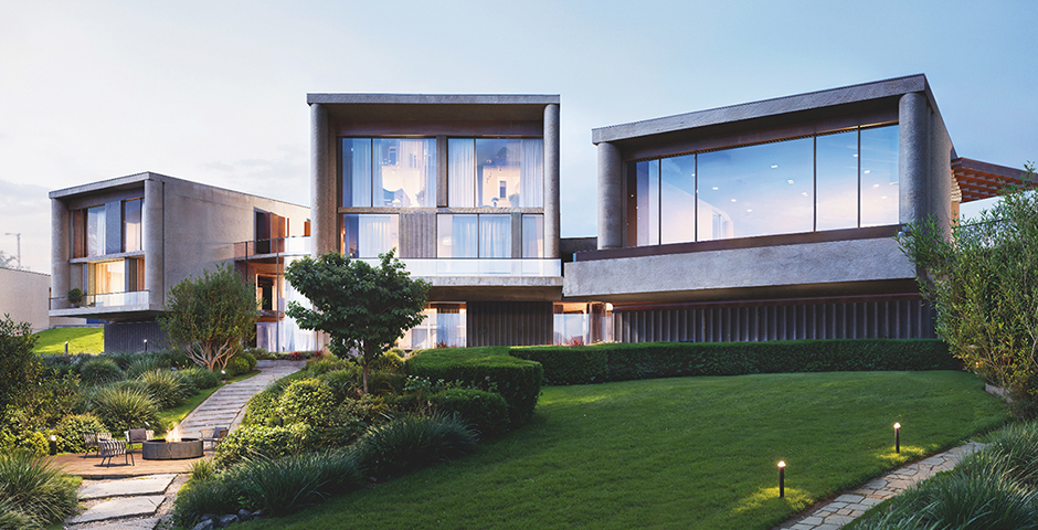 Общее для всех домов — выверенная лаконичная геометрия форм с большими окнами в пол, которые открывают пейзажные панорамы. Площадь резиденций варьируется от 472 до 1640 кв. м, что позволяет подобрать подходящую для владельцев с самыми разными привычками, отношениями с пространством и способами обеспечить свой комфорт: от минимилизма как образа мышления до максимума радостей загородной жизни, включая патио, бассейны, зимние сады и камины.