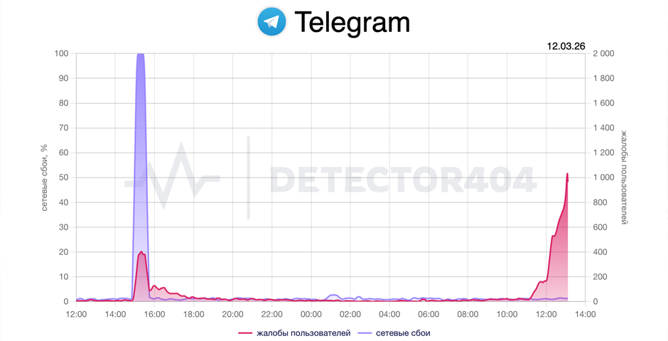 Пользователи Telegram в России и за рубежом второй день подряд жалуются на сбои в работе мессенджера, следует из данных сервиса Downdetector.