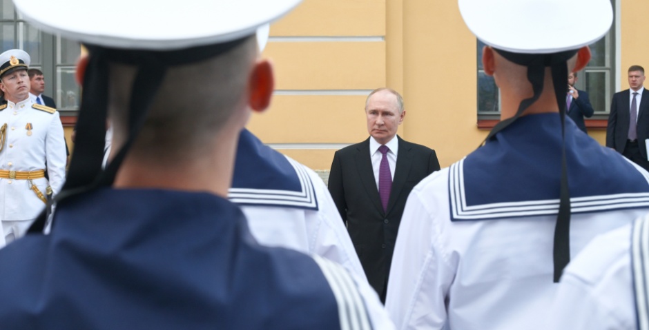 «[День ВМФ] — красивый праздник, но, мне кажется, вы согласитесь со мной в том, что в современных условиях — это правильно, что отмечаем этот праздник в боевой и рабочей обстановке, все на местах, и флот демонстрирует свои боевые возможности и качества», — сказал Владимир Путин.