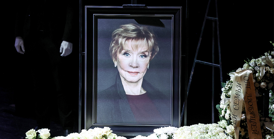 Гроб с телом актрисы был установлен на основной сцене театра, рядом разместили венки и портрет. Венок, в частности, направил президент РФ Владимир Путин.