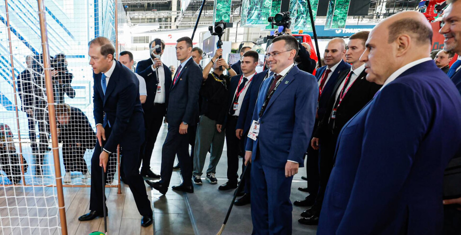 Высокопоставленные гости обратили внимание на интерактивную зону, посвященную хоккею с мячом. Посетители стенда могли попробовать себя в роли хоккеистов, что подчеркивает приверженность компании популяризации спорта и здорового образа жизни.