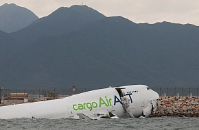 В Гонконге грузовой самолет Boeing выкатился с посадочной полосы в море